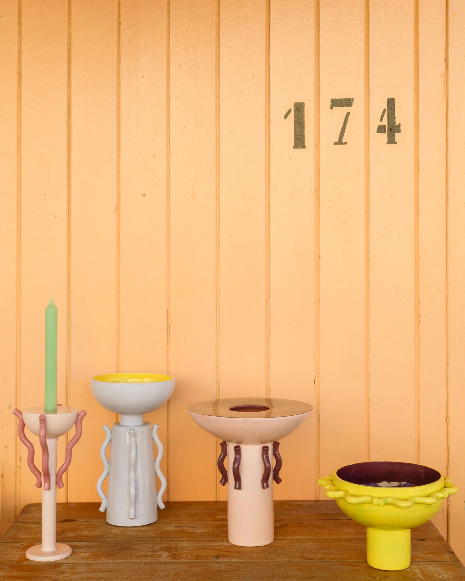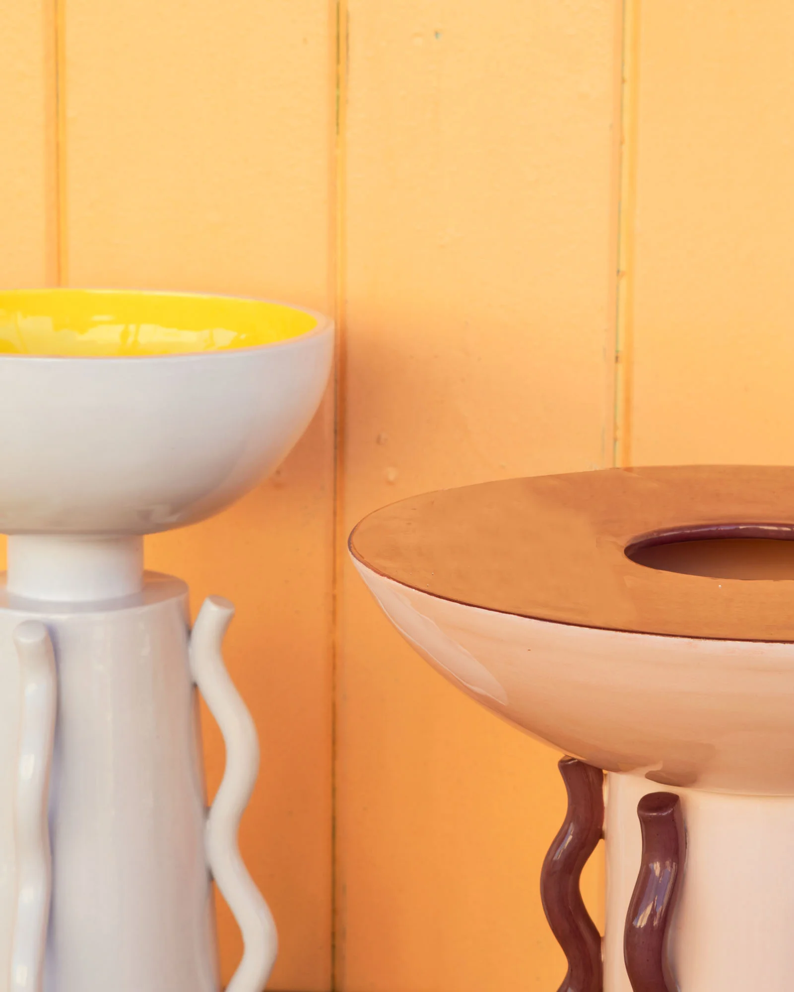 Arianna De Luca is an Italian ceramist and designer. Paying homage to Mediterranean elements and celebrating the Italian heritage, Arianna’s objects stand out in the domestic environment by transforming archetypes of tradition into pop, bold figures.
